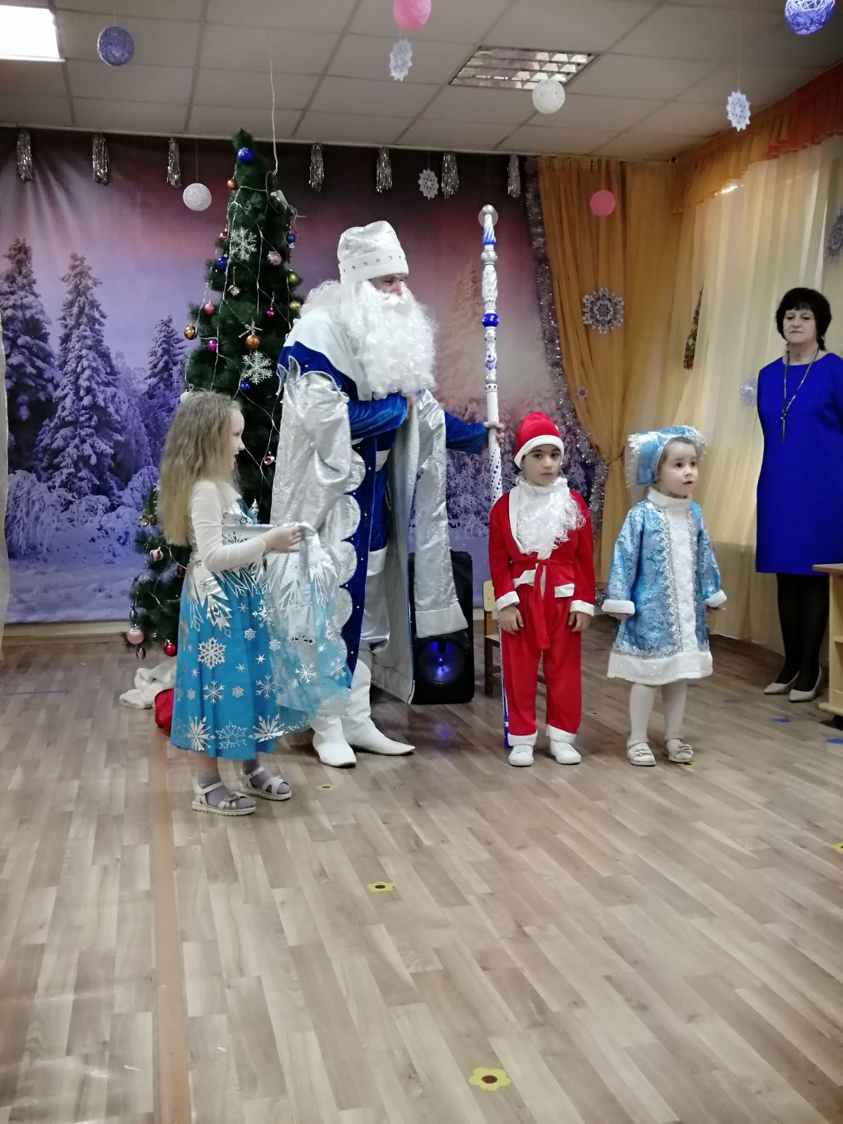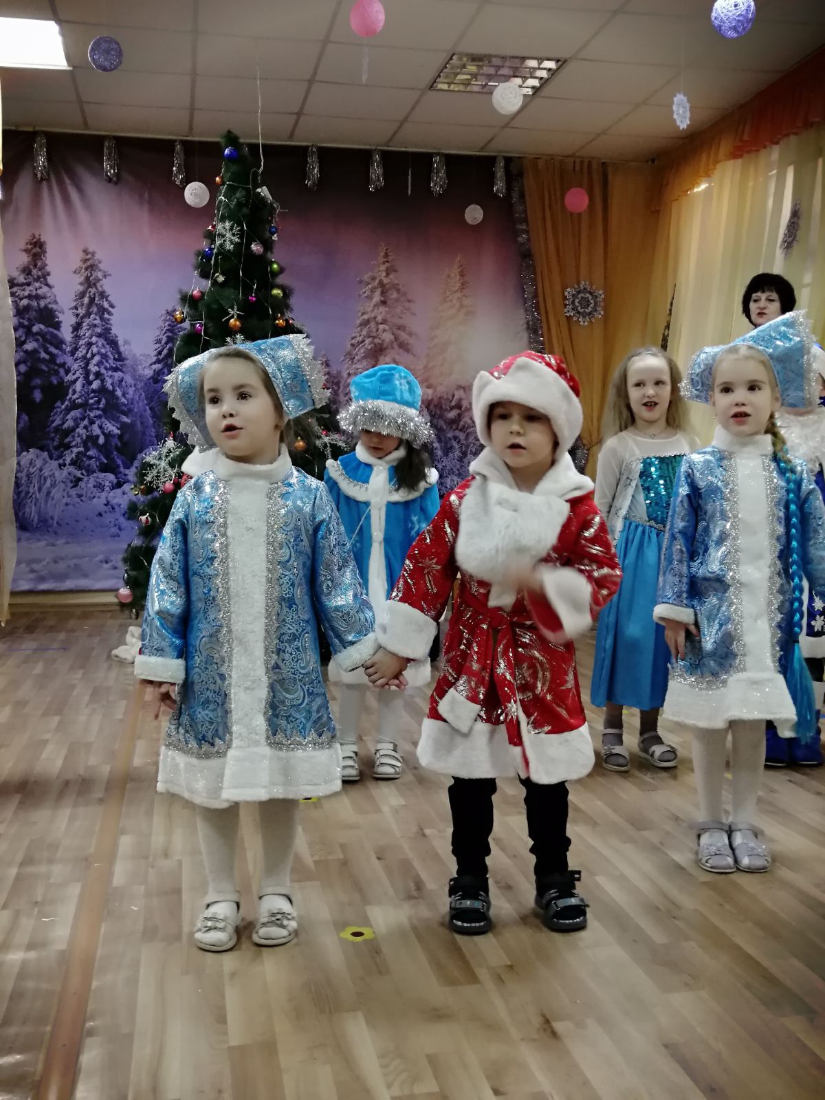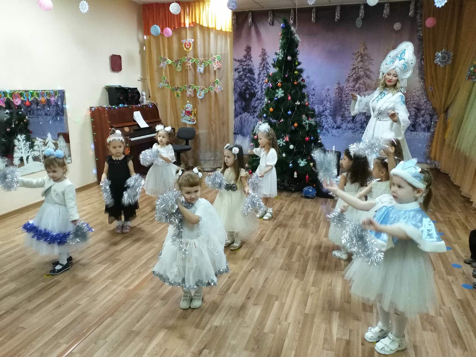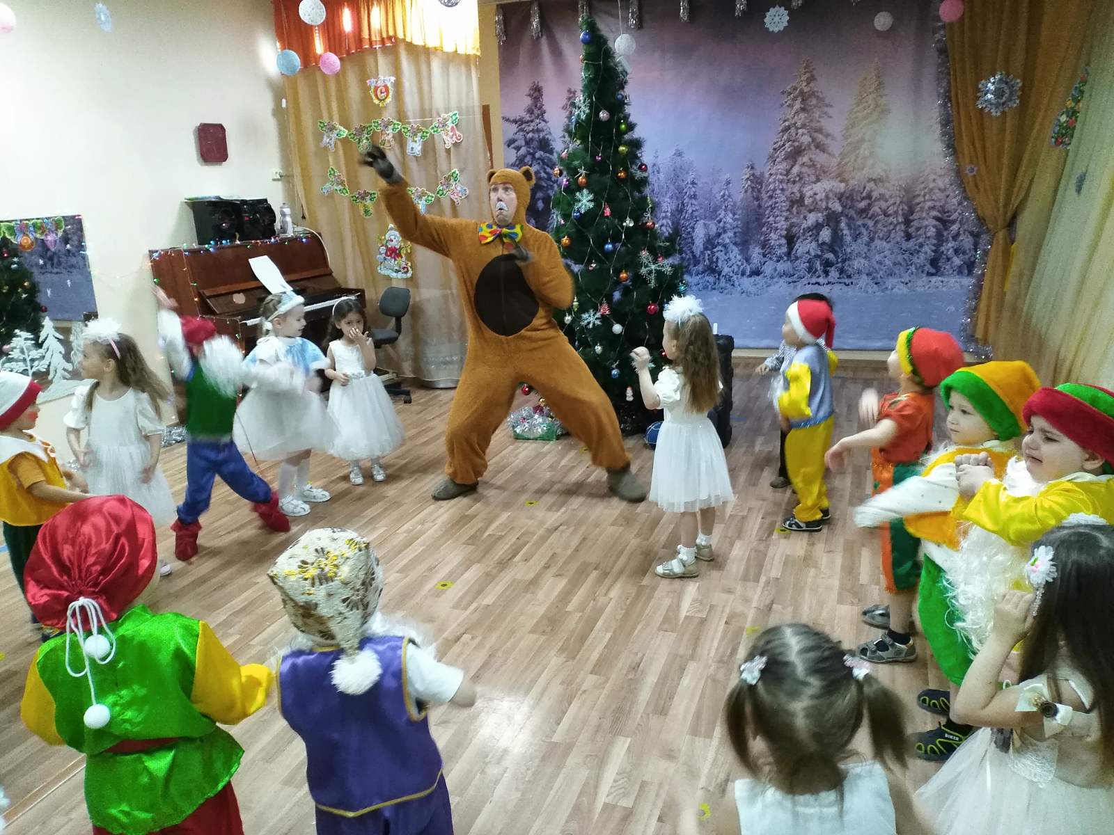 Каждый год в конце декабря для воспитанников всех возрастных групп в нашем детском саду организуются праздничные новогодние утренники. Красиво украшенный зал, нарядная елка, великолепные костюмы, подарки, Дед Мороз, Снегурочка и множество других сказочных персонажей ожидали наших воспитанников.